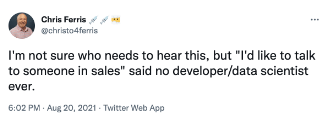 - PLG: Developer marketing is bottom up. Developers come and try out the product, see the benefits and tell their friends. They have a huge influence on buying decisions and when developers are involved customers are also often stickier.